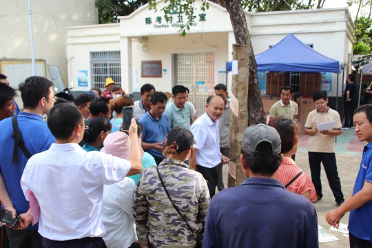 圖為保國分公司割膠技術員在樂東縣陳考村委會對膠農割膠技術現(xiàn)場測試。