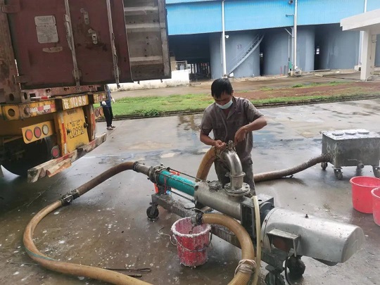 金隆橡膠加工分公司收膠臺員工組織下膠水。
