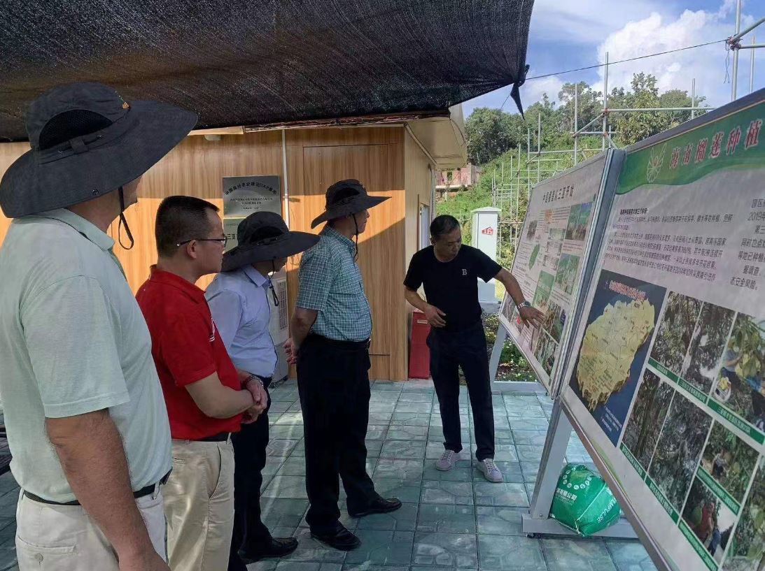 王天明一行到立才分公司二十三隊優(yōu)旗榴蓮示范種植基地調(diào)研。