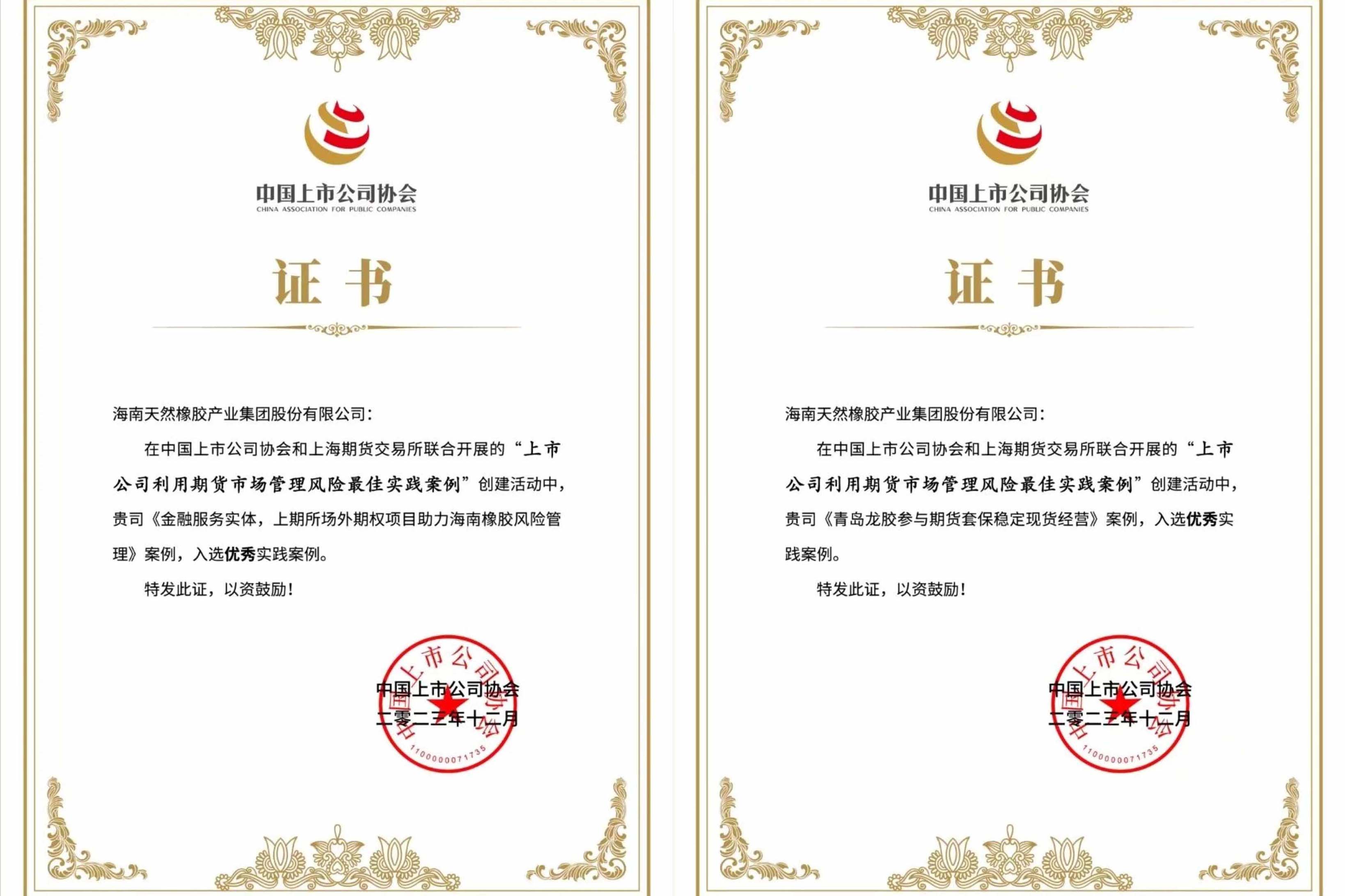 海南橡膠收到上海期貨交易所感謝信